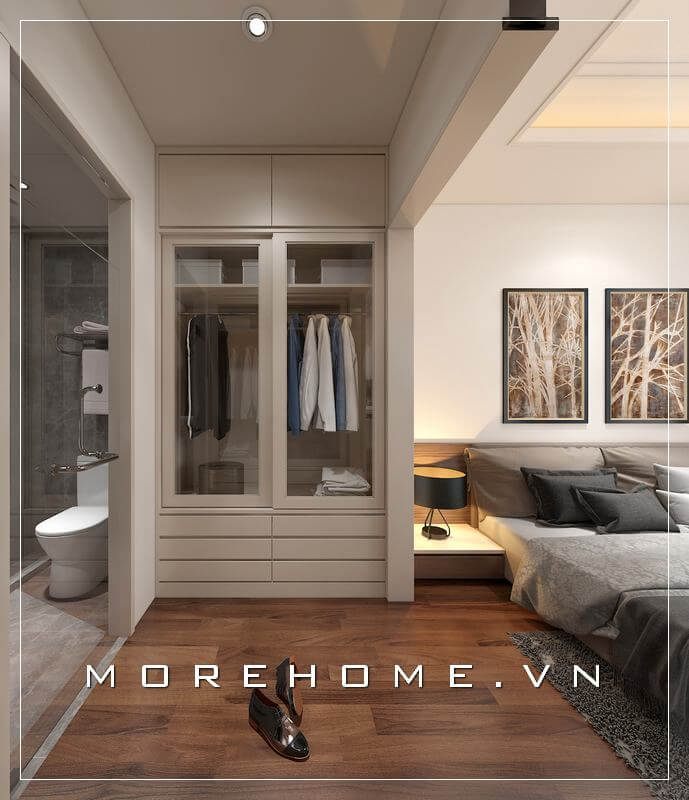 Tủ áo cánh kính kết hợp dạng lùa mang đến sự tiện dụng nhất cho người sử dụng tại phòng ngủ chung cư hiện đại