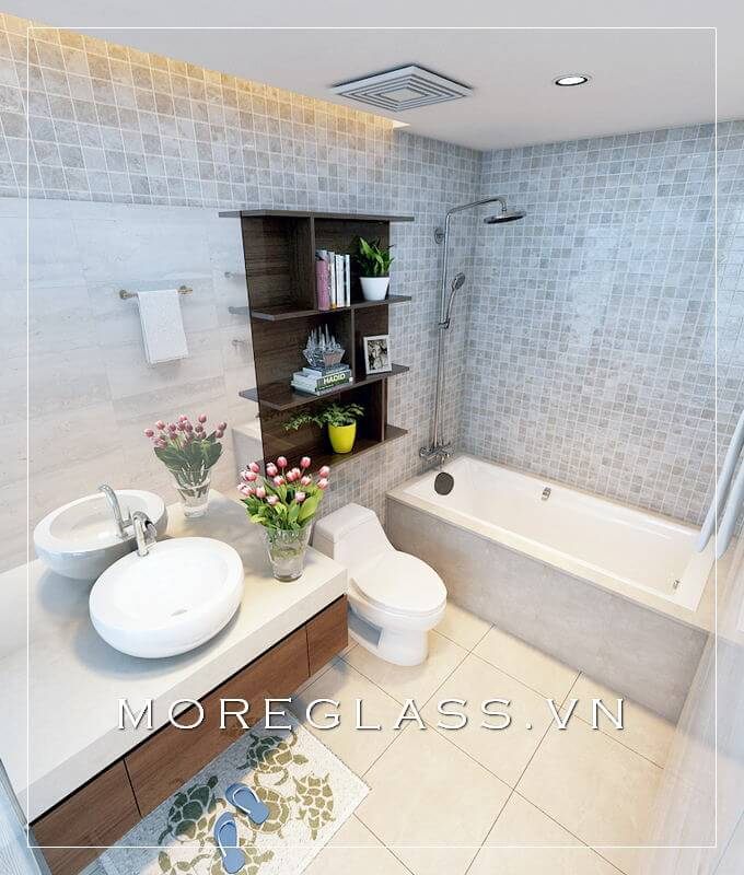 Mẫu kệ tủ phòng tắm gỗ công nghiệp với kiểu dáng đơn giản, nhỏ gọn giúp tiết kiệm diện tích không gian căn phòng.