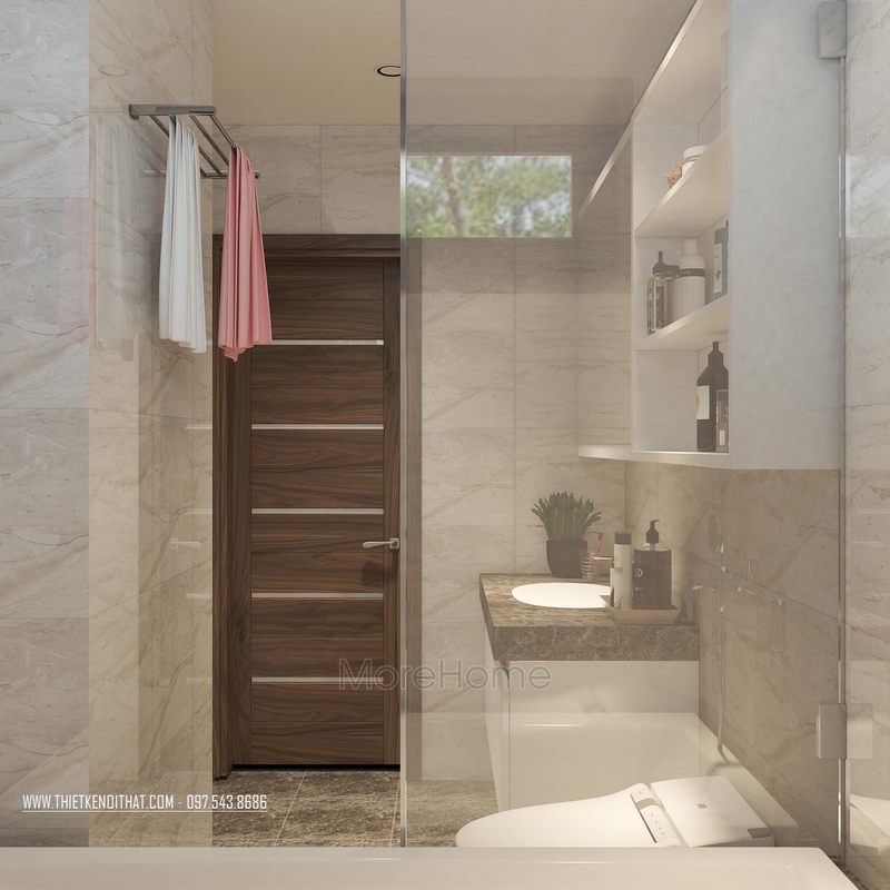 Mẫu thiết kế phòng tắm kính đẹp, nhỏ gọn với nội thất đơn giản cùng thiết bị vệ sinh hiện đại, tinh tế tạo không gian thông thoáng hơn.