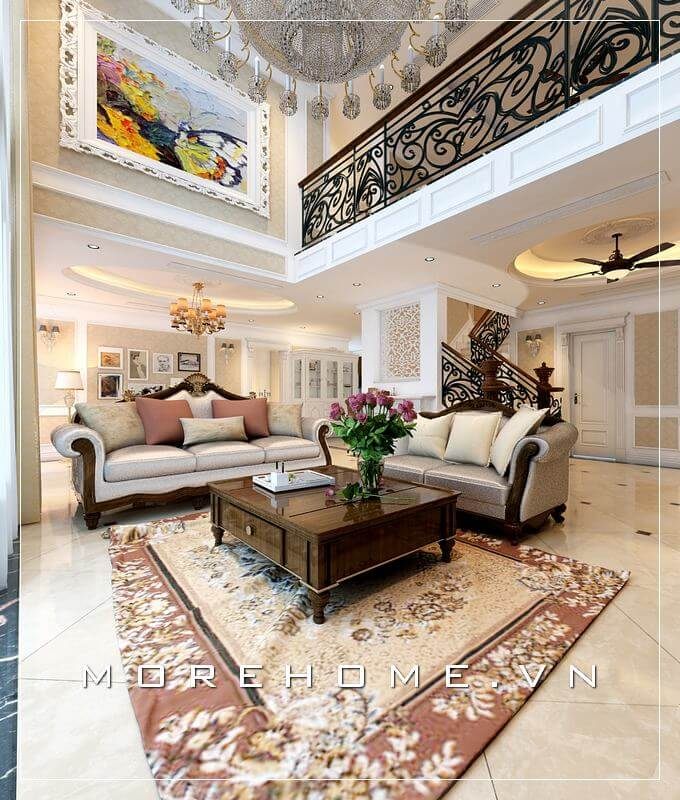 Bố trí nội thất phòng khách biệt thự cao cấp phong cách tân cổ điển sang trọng và đẳng cấp