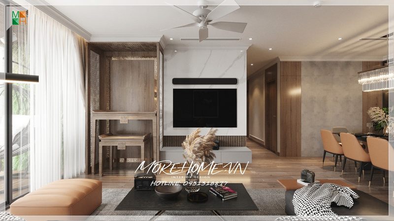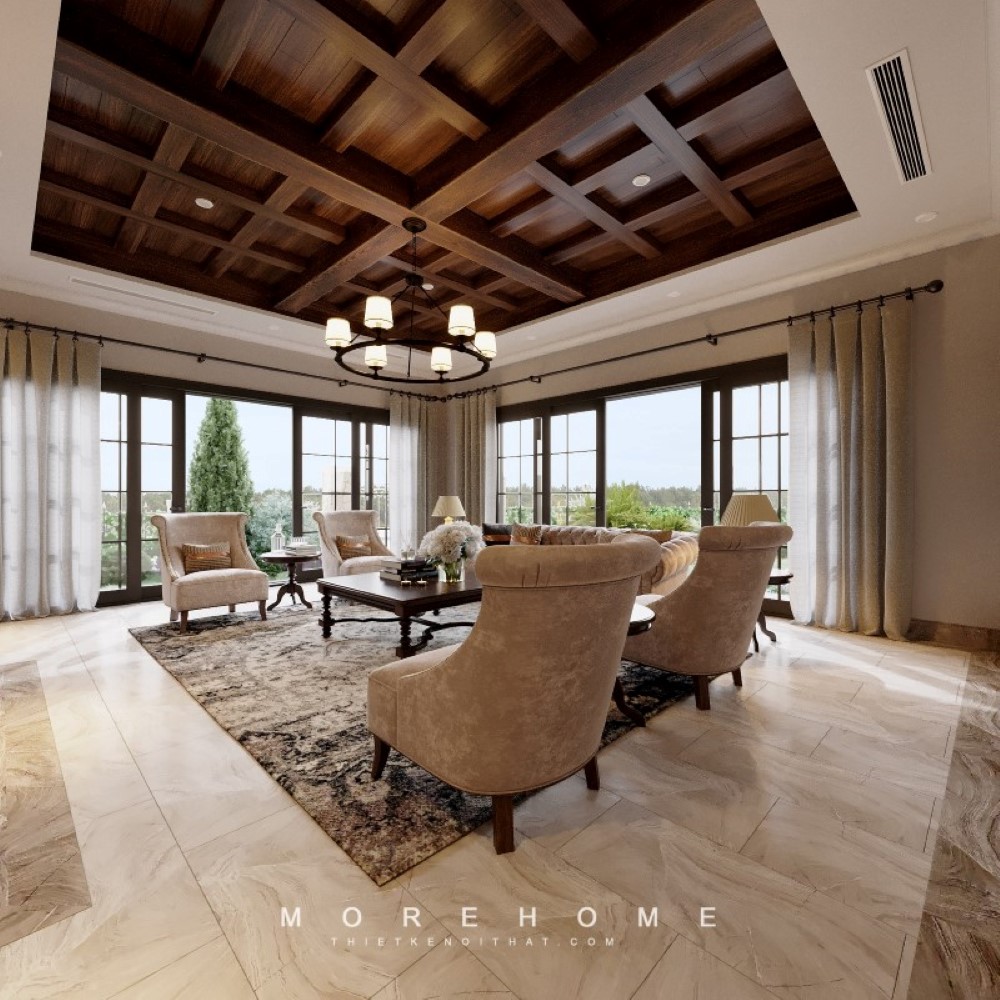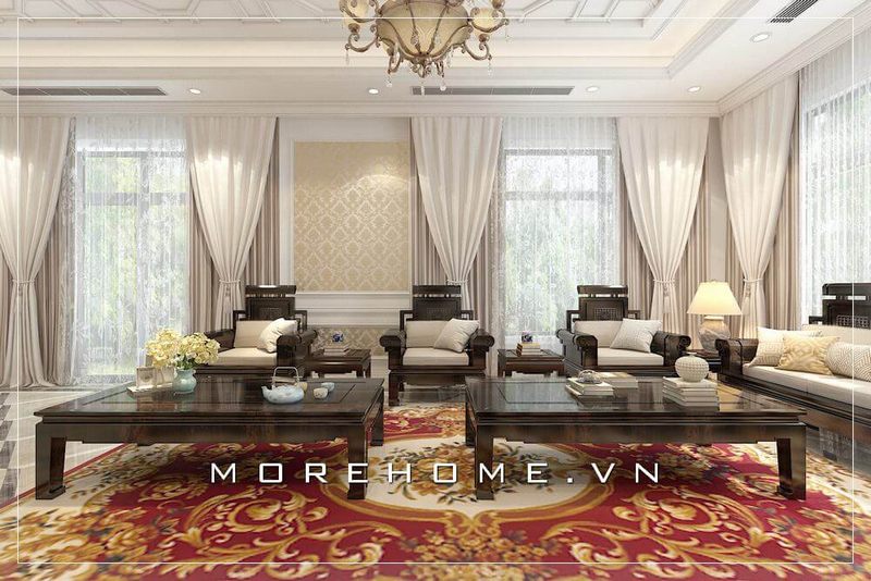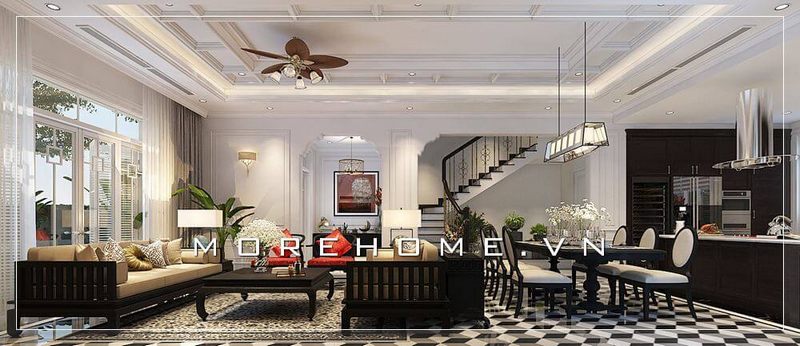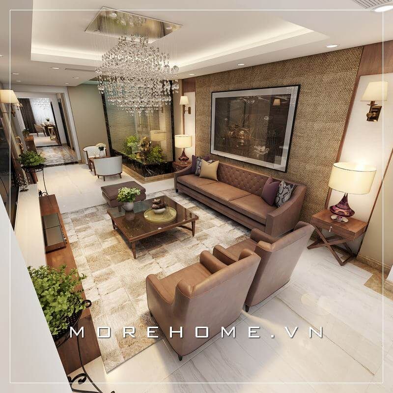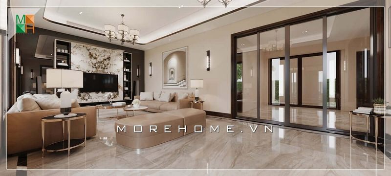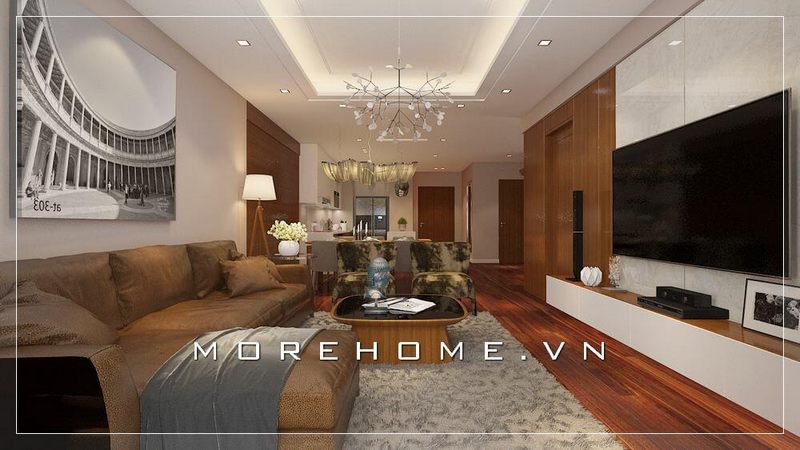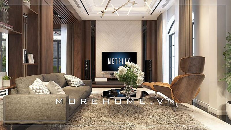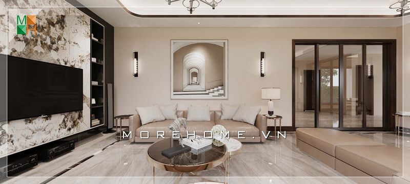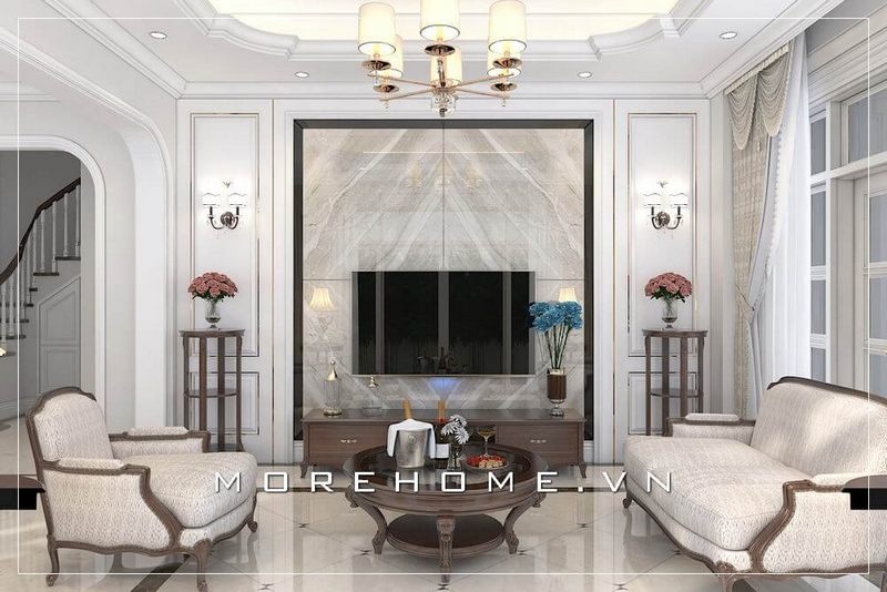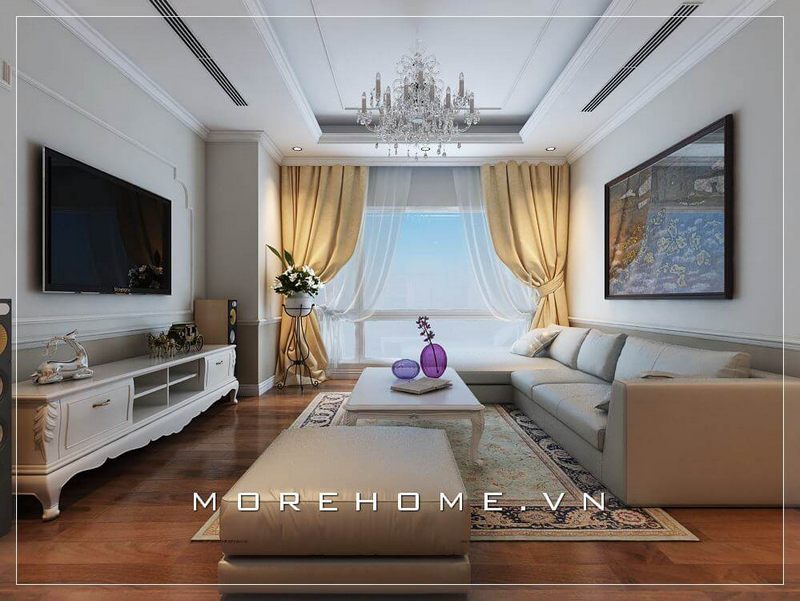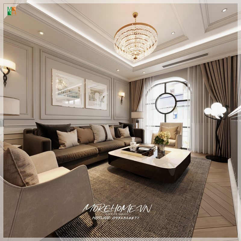 Morehome gợi ý cho bạn mẫu thiết kế nội thất phòng khách chung cư, nhà phố tiện nghi và sang trọng mang phong cách tân cổ điển.