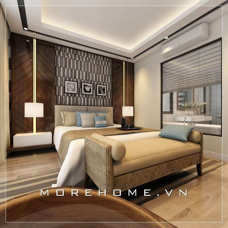 Thiết kế giường ngủ hiện đại kết hợp tab đầu giường tạo sự tiện nghi và thoải mái nhất cho gia chủ